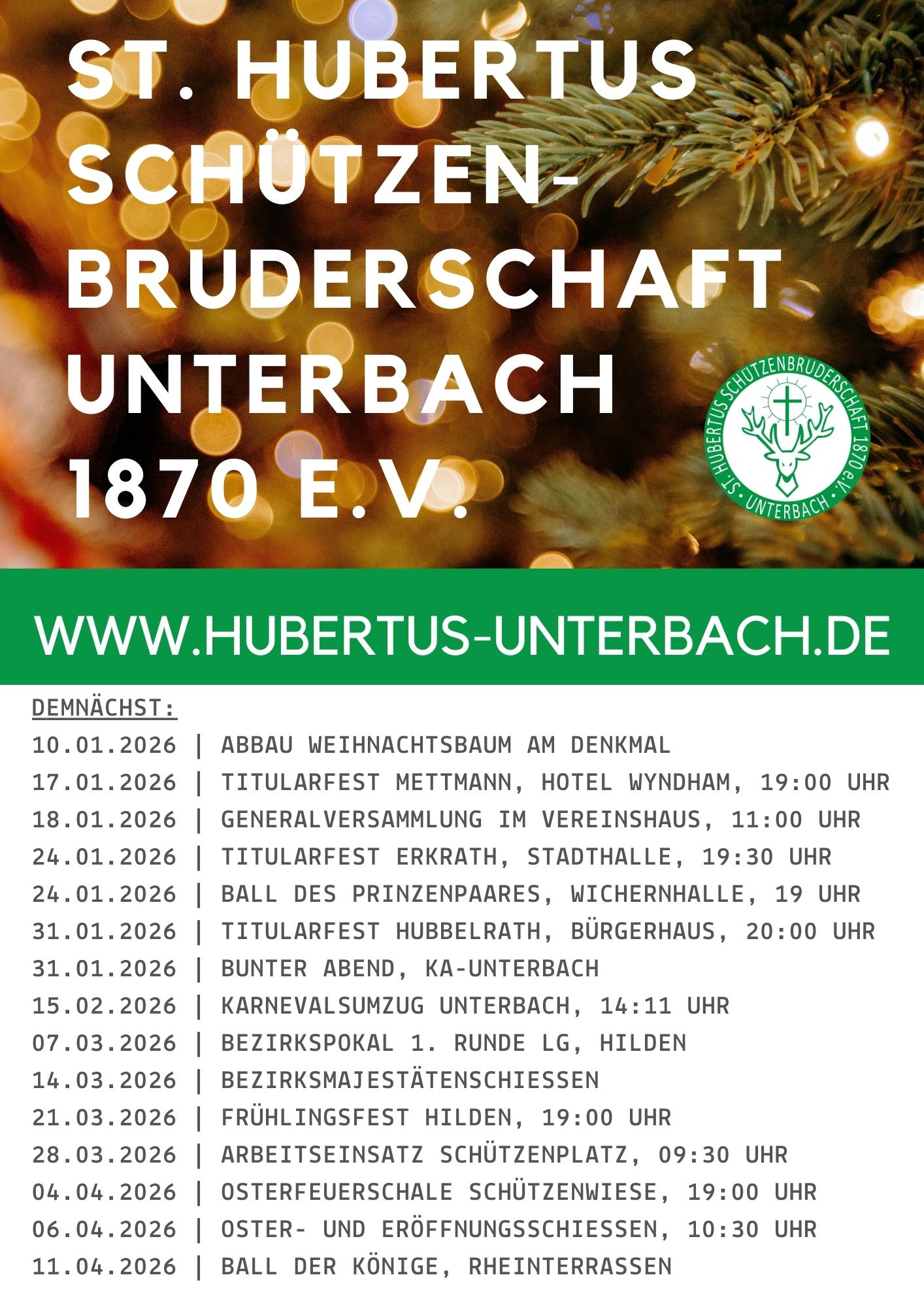 Wir beteiligen uns an vielen Unterbacher Aktivitäten. Ob Karnevalsumzug, Pfarrfest, Heimatfest oder Weihnachtsmarkt – wir sind gerne mit von der Partie und unterstützen somit die anderen Unterbacher Vereine. Weiterhin besuchen wir eine Vielzahl befreundeter Vereine.
